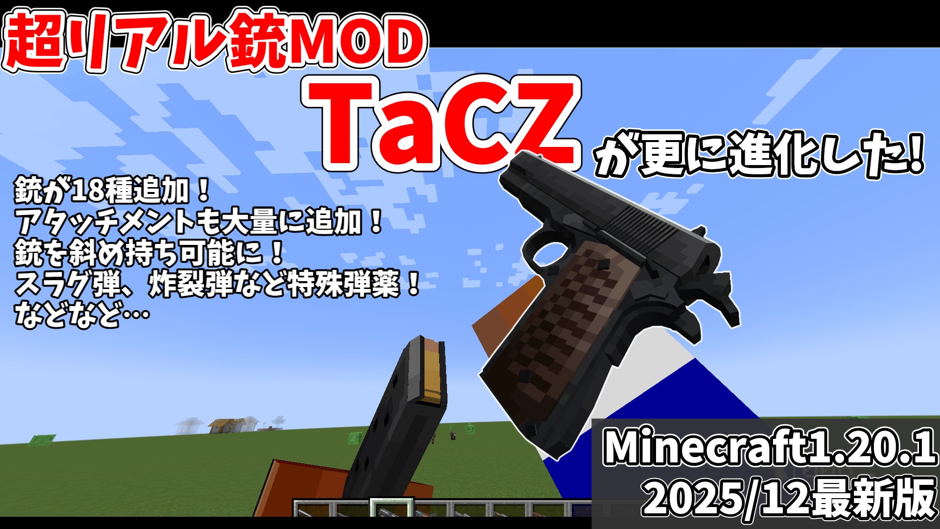 このMODを使うことで、プレイヤーやMOBの大きさを変えることができます。それだけではなく、背の高さ、横幅、攻撃速度、落下ダメージに対する耐性、攻撃力などエンティティに属するさまざまな数値を変更することができます。