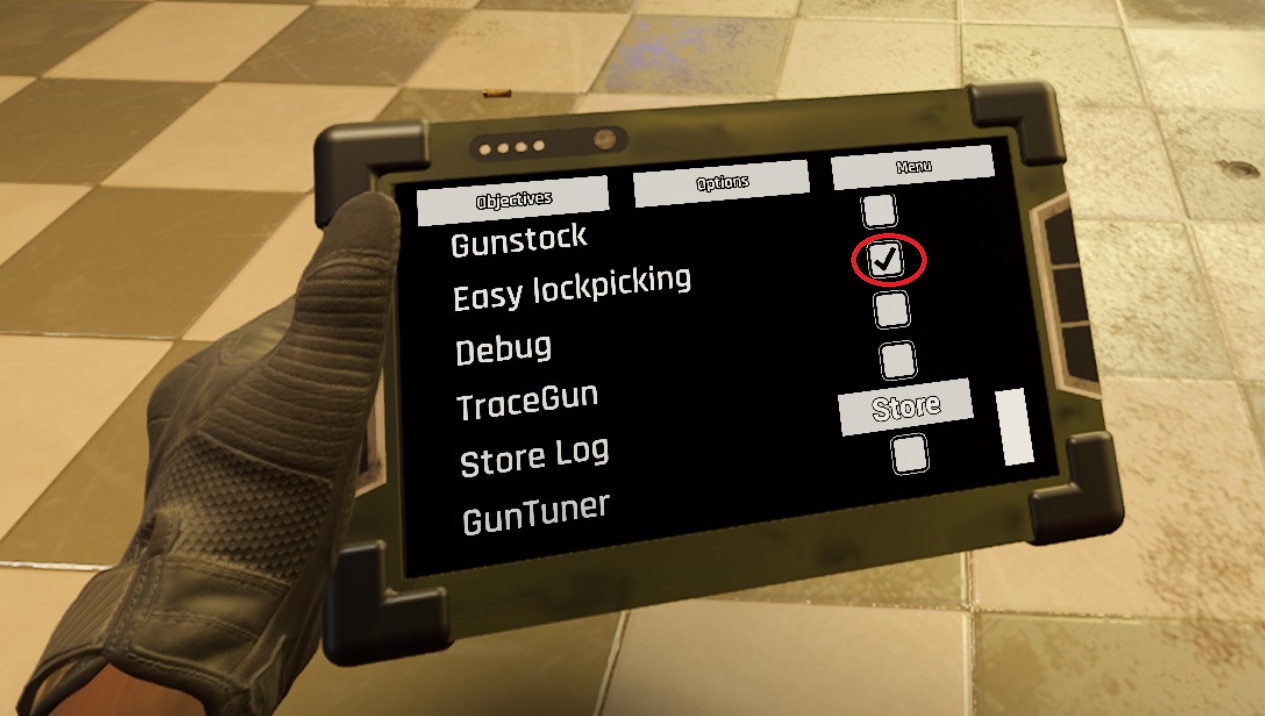 更に下の「Easy lockpicking」にチェックをいれると、ロックピックに必要な時間が短くなり簡単になります。