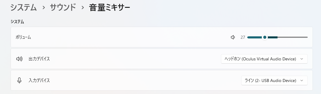 音の出力先は自動では切り替わりません。VRHMDの出力デバイスに自分で設定しましょう。