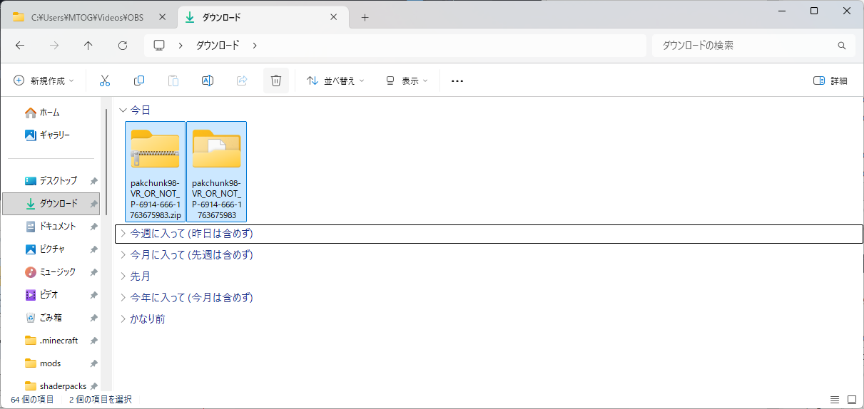 展開されたフォルダーが作成され、中に.pakファイルがあればOKです。