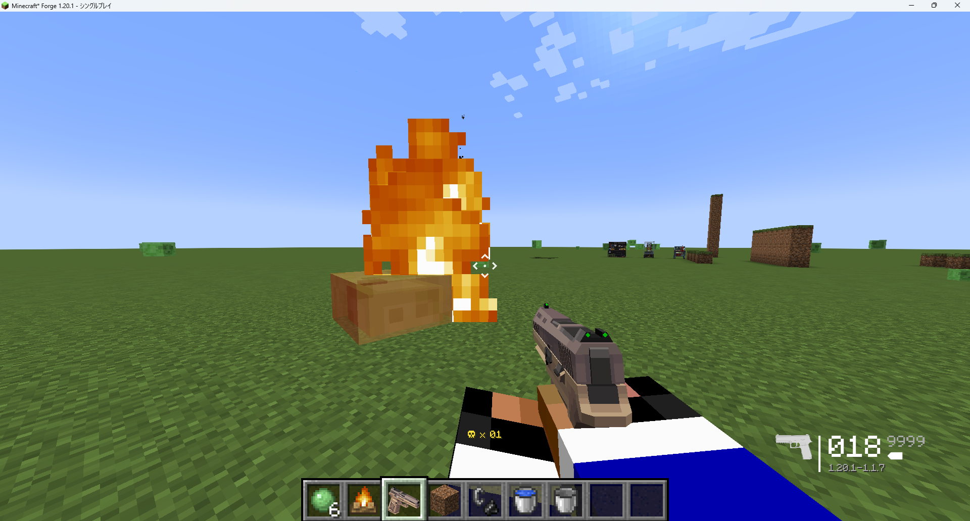 焼夷弾:当たった敵を炎上させます。(※燃えるのはエンティティのみです。焚き火やブロックが着火することはありません)