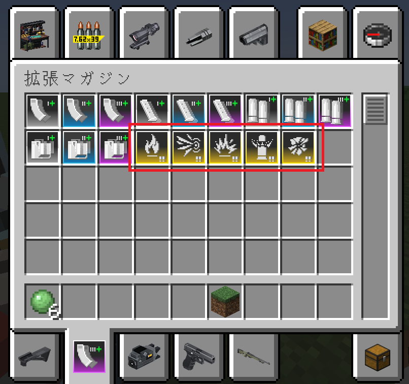 「拡張マガジン」の枠に、新たに特殊な弾薬が登場しました。(サバイバルでも「アタッチメント作成テーブル」から作成可能です)