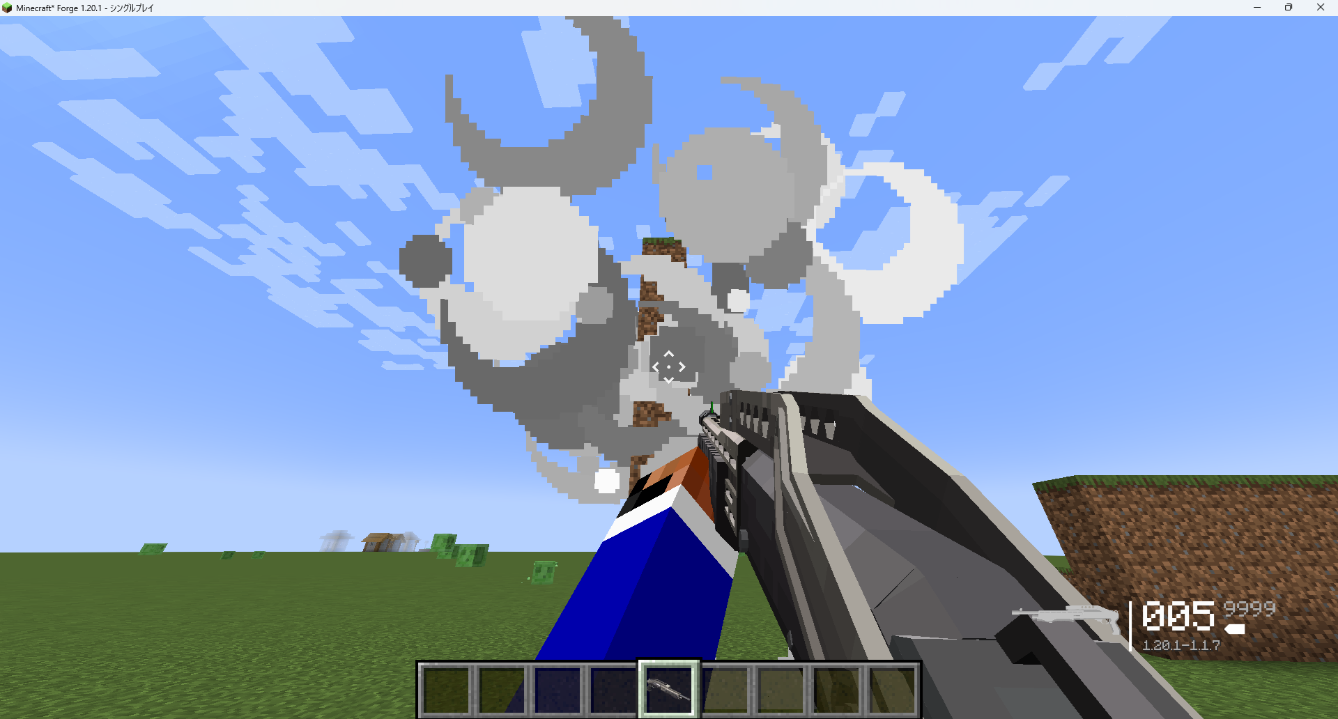 1つの弾につき爆発が起きるので、ショットガンで使うと大爆発が起きます。