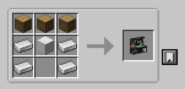 TaCZ ガンスミステーブル:銃を作成します。レシピはこれまでと同じで「原木3、鉄インゴット4、鉄ブロック1」です